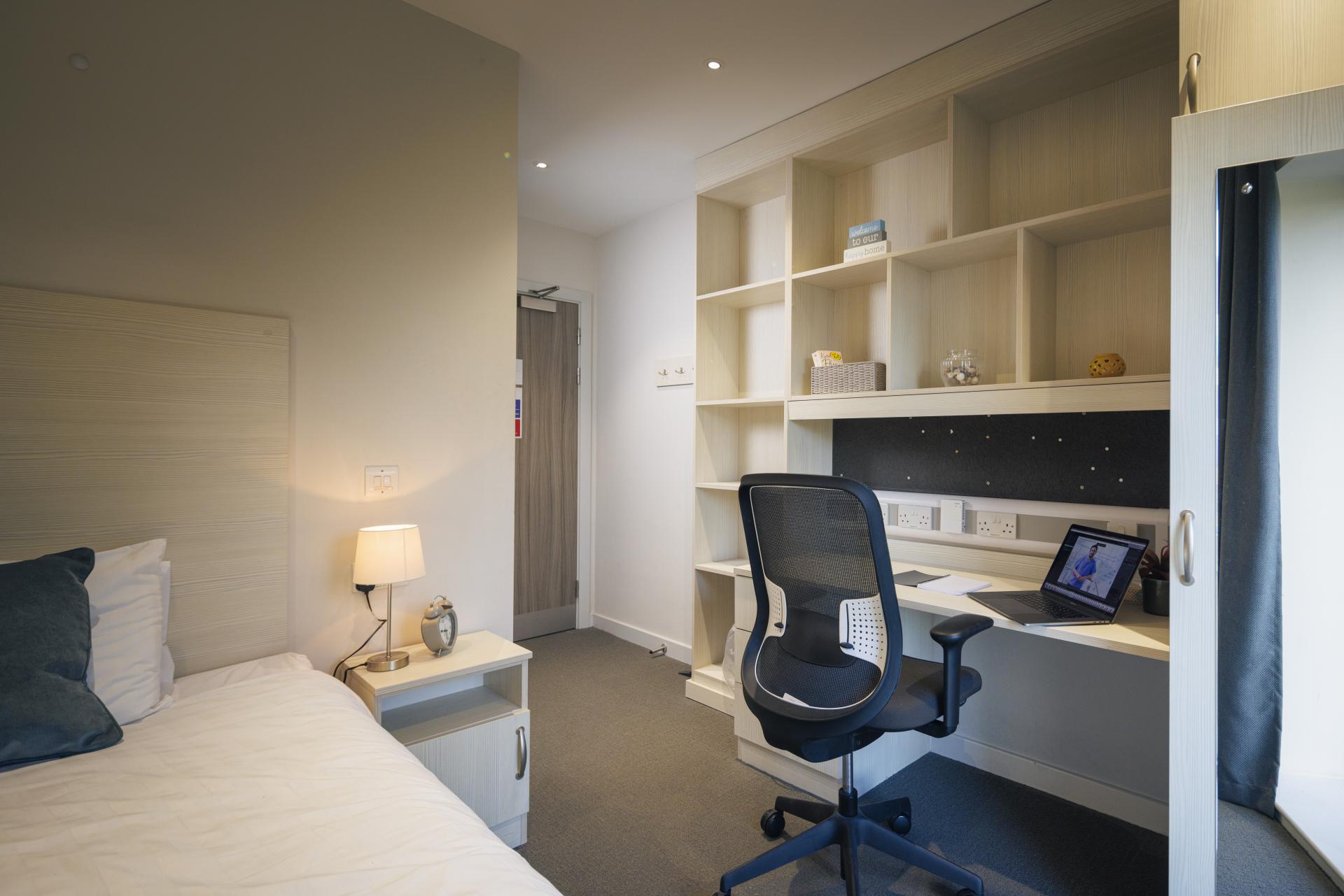 The Courtyard offers ensuite rooms featuring modern interiors and excellent storage solutions, including under-bed storage, shelving, and a generously sized single wardrobe. Each room also comes equipped with a study desk and office chair.